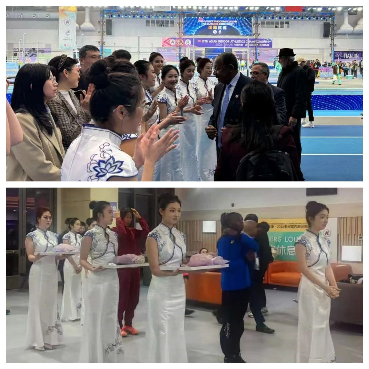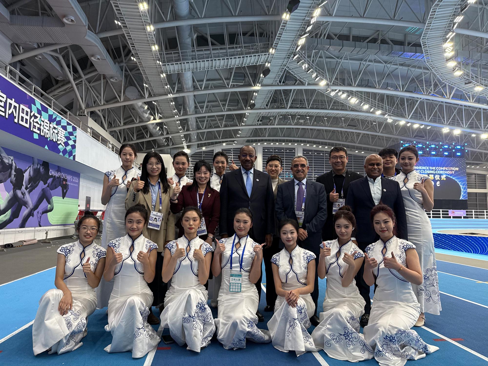 赛事期间,礼仪志愿者们仪态端庄、举止得体,在颁奖环节准确完成引导、呈奖等流程。亚田联主席达兰·哈马德先生亲临慰问,对颁奖工作的专业性给予高度评价。亚田联礼宾主任艾哈迈德·伊斯梅尔·阿勒泽亚拉向志愿者赠送纪念徽章并表达感谢。