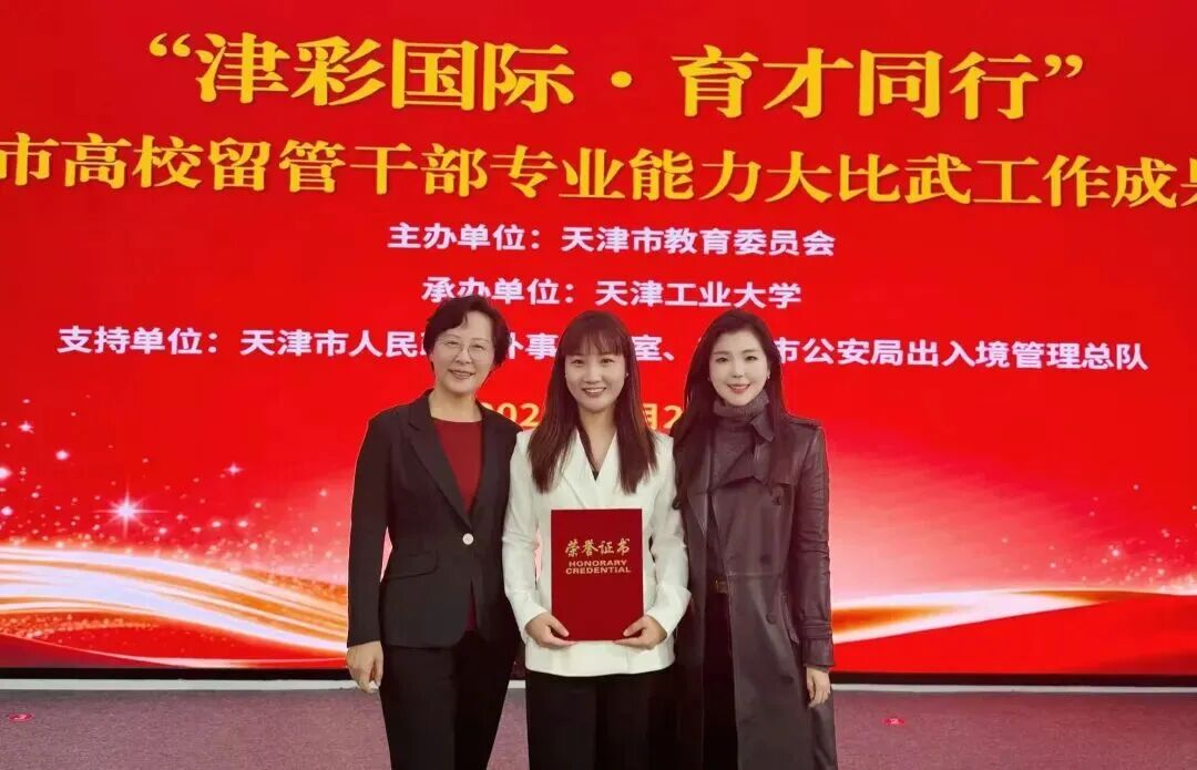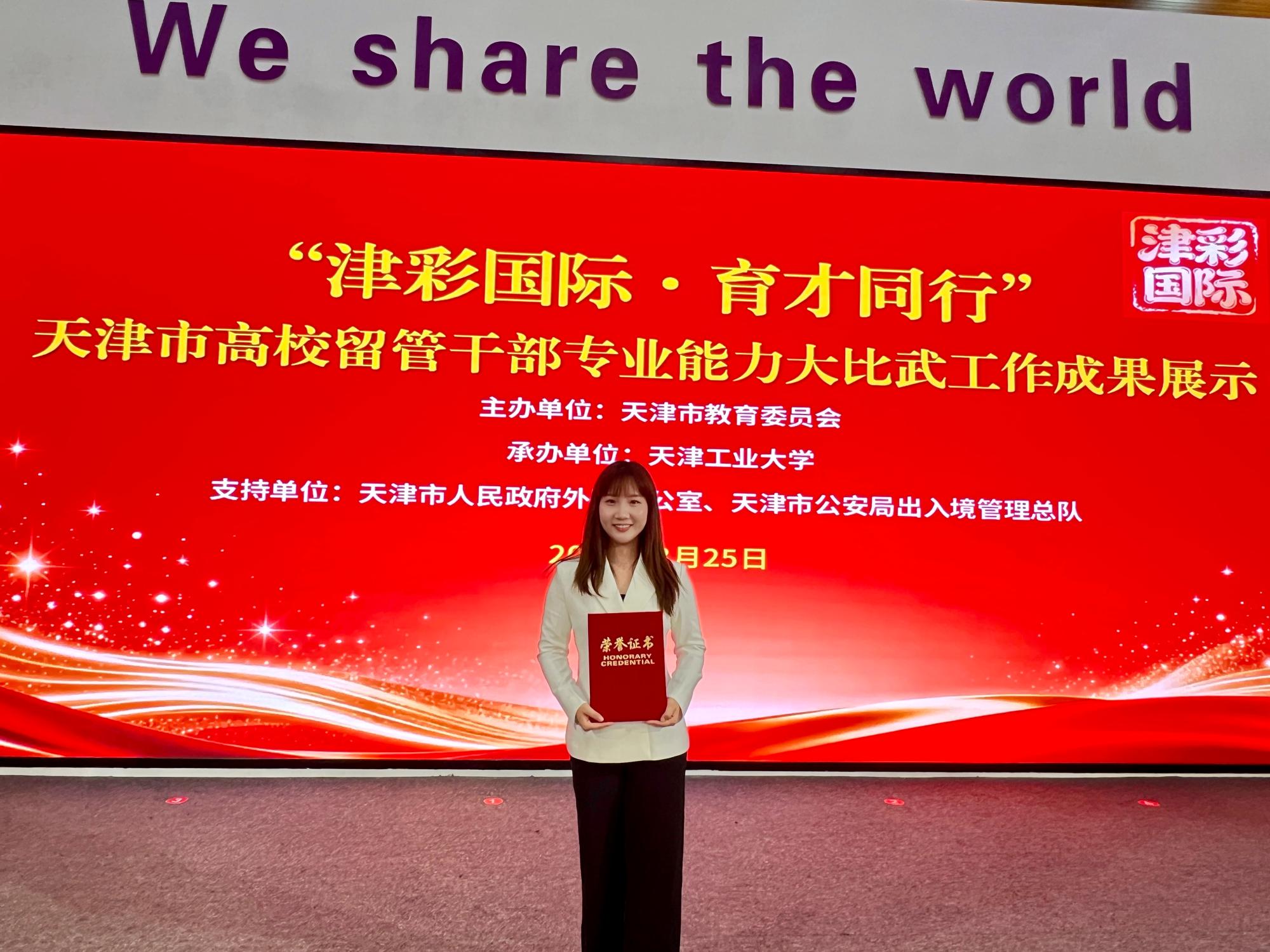为深入学习党的二十大和二十届历次全会精神、全国教育大会精神,做强做精“留学天津”品牌,3月25日,由市教育两委主办的“津彩国际·育才同行”2025年天津市高校留管干部专业能力大比武工作成果展示暨颁奖仪式在天津工业大学举行。市委教育工委副书记刘怡蔓出席并讲话。包括我校传媒与艺术学院衡悠在内的16名选手代表以主题演讲形式分享留管干部的实践探索与思考感悟。